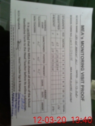 | Attendance Register | Head Teacher | MEA with School | Visit Proof |