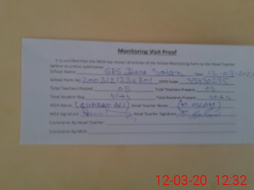| Attendance Register | Head Teacher | MEA with School | Visit Proof |