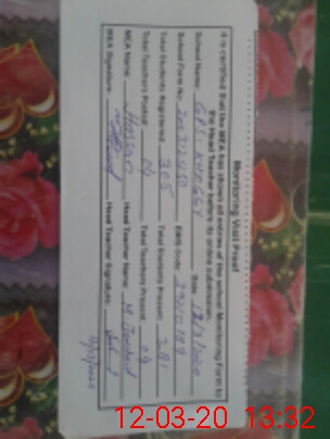 | Certified that this School was Inspected by the Undersigned MEA/DMO Today and the Information Stated Above is as Per Record. | |||||