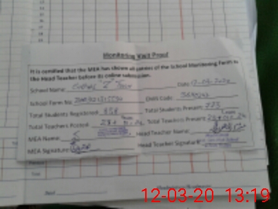 | Attendance Register | Head Teacher | MEA with School | Visit Proof |