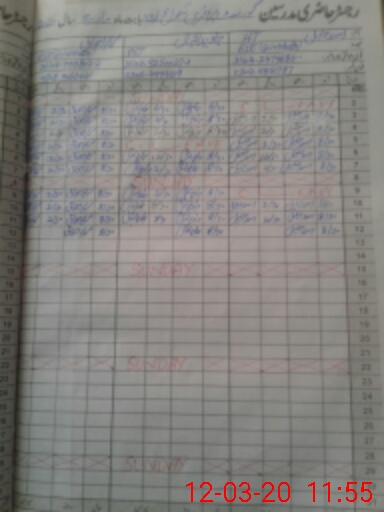 | CNIC | Full Name | Designation | R/C | Absence During Last Calender Month |
