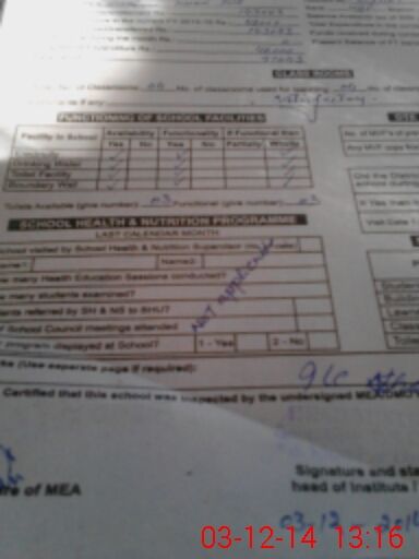| Certified that this School was Inspected by the Undersigned MEA/DMO Today and the Information Stated Above is as Per Record. | |||||
