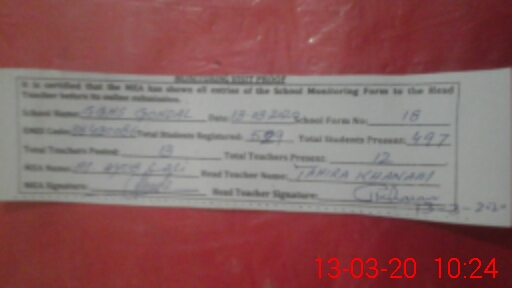 | Certified that this School was Inspected by the Undersigned MEA/DMO Today and the Information Stated Above is as Per Record. | |||||