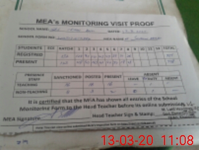 | Attendance Register | Head Teacher | MEA with School | Visit Proof |