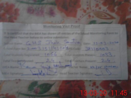 | EMIS Code: 38110003 | Name of School: GHS JHOKE SAMTIA | |||