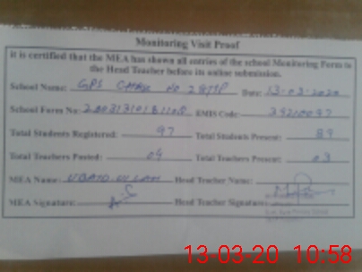 | Attendance Register | Head Teacher | MEA with School | Visit Proof |