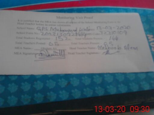| EMIS Code: 32310109 | Name of School: GPS MUHAMMAD WALI | |||