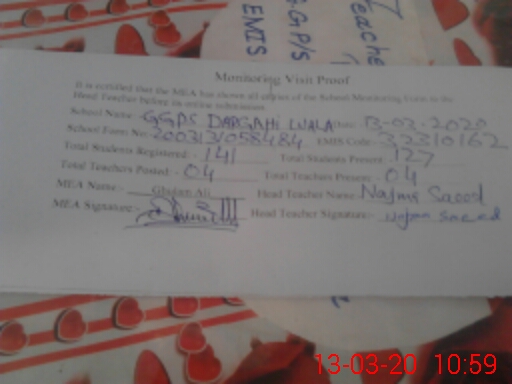 | EMIS Code: 32310162 | Name of School: GGPS DARGHAI WALA | |||