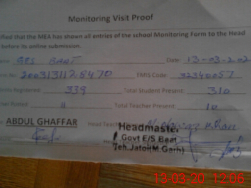 | Certified that this School was Inspected by the Undersigned MEA/DMO Today and the Information Stated Above is as Per Record. | |||||