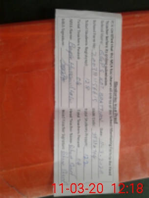 | No. of Students Present - Male | 0 | 0 | 19 | 7 | 7 | 3 | 0 | 2 | 38 | |||||||