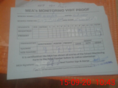 | Attendance Register | Head Teacher | MEA with School | Visit Proof |