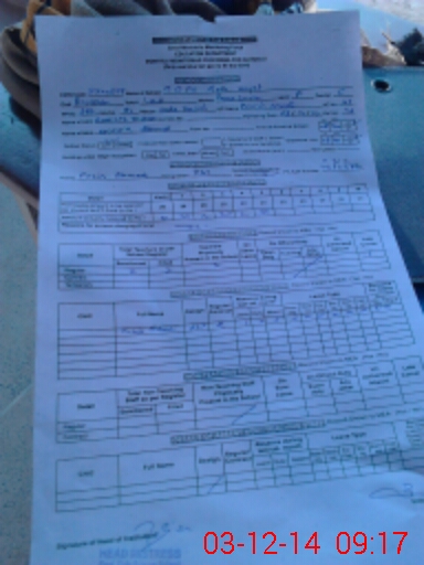 | Monitoring Date: 03-12-2014 | Start Time: 03-12-2014 08:58 AM | End Time: 03-12-2014 09:18 AM | Name of MEA: No**** Mu**** | |