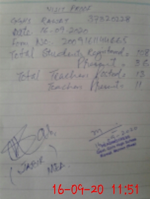 | Monitoring Date: 16-09-2020 | Start Time: 16-09-2020 10:55 AM | End Time: 16-09-2020 12:05 PM | Name of MEA: Rt**** Ja**** Hu**** | |