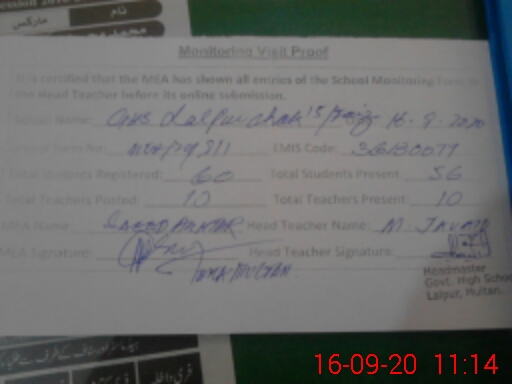 | EMIS Code: 36130077 | Name of School: GHS LAL PUR CHAK NO. 15 FAIZ | |||