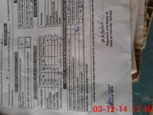 | School Visited by School Health & Nutrition Supervisor (No. of Visits) | 1 | Name1: | SAKHAWAT ALI | Name2: | |