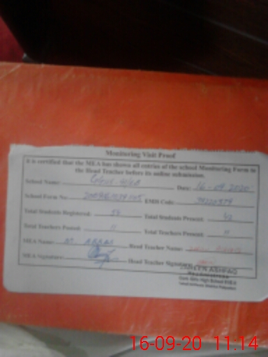| Certified that this School was Inspected by the Undersigned MEA/DMO Today and the Information Stated Above is as Per Record. | |||||