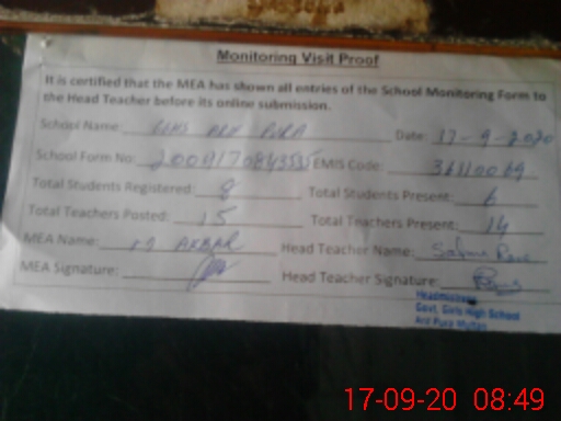 | Certified that this School was Inspected by the Undersigned MEA/DMO Today and the Information Stated Above is as Per Record. | |||||
