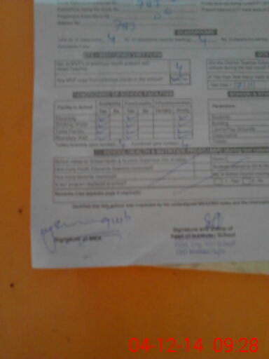 | Attendance Register | Head Teacher | MEA with School | Visit Proof |