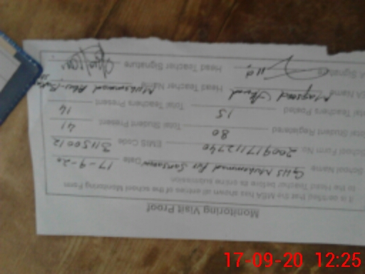 | Attendance Register | Head Teacher | MEA with School | Visit Proof |