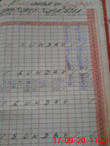 | CNIC | Full Name | Designation | R/C | Absence During Last Calender Month |