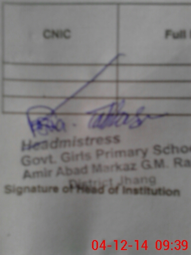 | Name: RU**** AS**** Designation: (School Headmaster's/Headmistress's) PST Phone/Cell Number: 03**** |