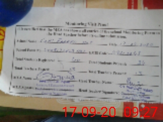 | Attendance Register | Head Teacher | MEA with School | Visit Proof |