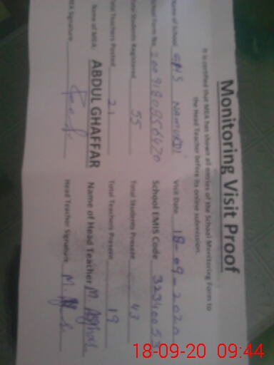 | Attendance Register | Head Teacher | MEA with School | Visit Proof |