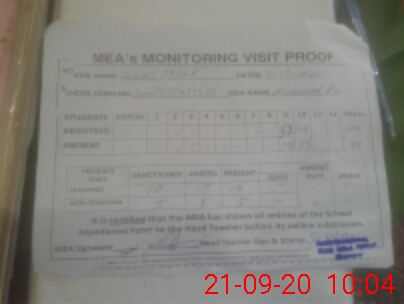 | Attendance Register | Head Teacher | MEA with School | Visit Proof |