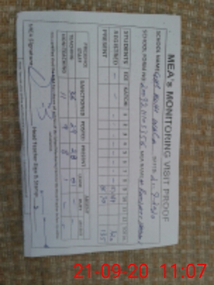 | Attendance Register | Head Teacher | MEA with School | Visit Proof |