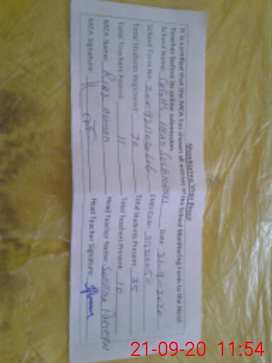 | Attendance Register | Head Teacher | MEA with School | Visit Proof |