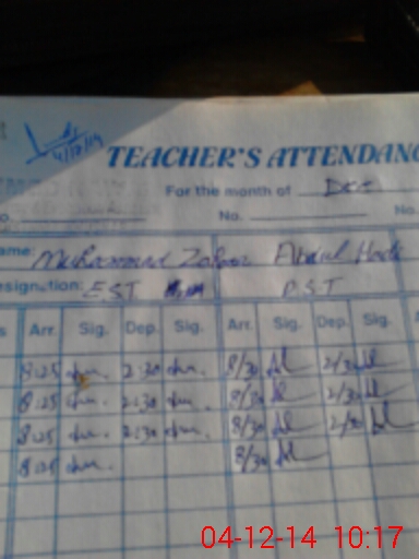 | Attendance Register | Head Teacher | MEA with School | Visit Proof |