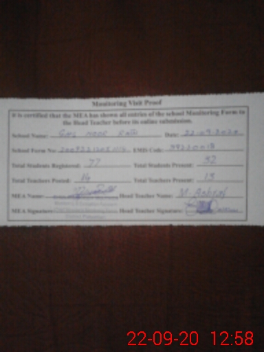 | Monitoring Date: 22-09-2020 | Start Time: 22-09-2020 12:05 PM | End Time: 22-09-2020 12:58 PM | Name of MEA: Gh**** Mu**** Mu**** (R**** | |