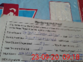 | Monitoring Date: 23-09-2020 | Start Time: 23-09-2020 08:38 AM | End Time: 23-09-2020 09:23 AM | Name of MEA: NA**** AH**** BN**** | |