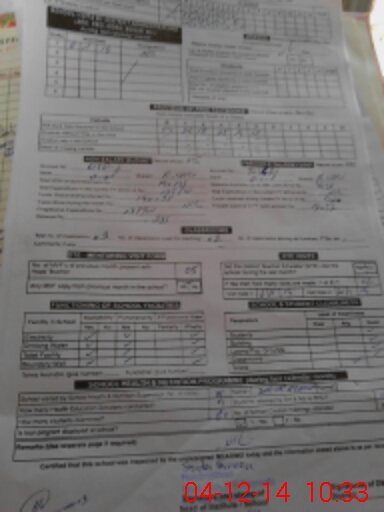 | School Visited by School Health & Nutrition Supervisor (No. of Visits) | 1 | Name1: | ZIA UR REHAMAN | Name2: | OO |