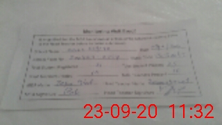 | Monitoring Date: 23-09-2020 | Start Time: 23-09-2020 11:02 AM | End Time: 23-09-2020 11:33 AM | Name of MEA: Za**** Iq**** BN**** | |