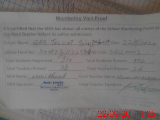 | EMIS Code: 36120003 | Name of School: GHS TALKOT SHUJA ABAD | |||