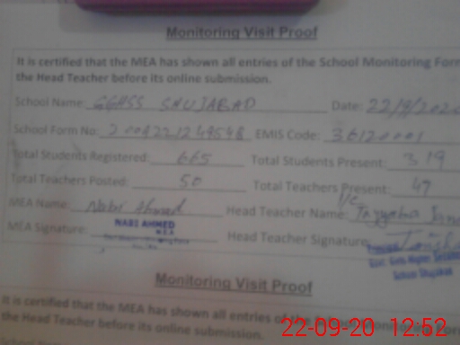 | EMIS Code: 36120001 | Name of School: GGHSS SHUJABAD MULTAN | |||