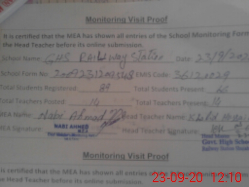 | EMIS Code: 36120029 | Name of School: GHS RAILWAY STATION SHUJABAD | |||