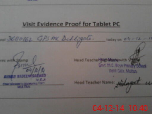 | EMIS Code: 36110162 | Name of School: GPS MC DEHLI GATE MULTAN | |||