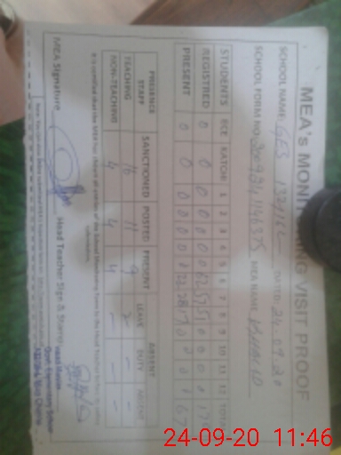 | Monitoring Date: 24-09-2020 | Start Time: 24-09-2020 10:38 AM | End Time: 24-09-2020 12:02 PM | Name of MEA: Kh**** Me**** | |