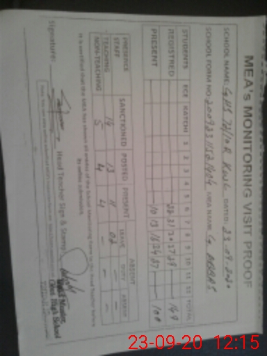 | Monitoring Date: 23-09-2020 | Start Time: 23-09-2020 11:14 AM | End Time: 23-09-2020 12:43 PM | Name of MEA: GH**** AB**** | |
