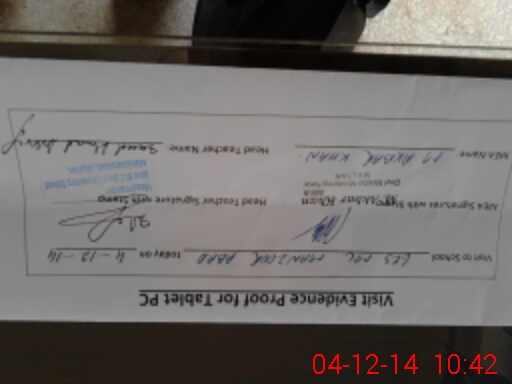 | Attendance Register | Head Teacher | MEA with School | Visit Proof |