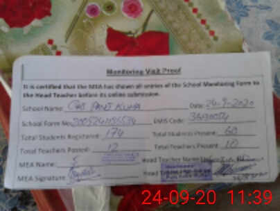 | Attendance Register | Head Teacher | MEA with School | Visit Proof |