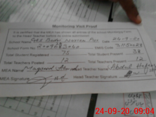 | Certified that this School was Inspected by the Undersigned MEA/DMO Today and the Information Stated Above is as Per Record. | |||||