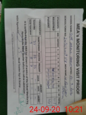 | Certified that this School was Inspected by the Undersigned MEA/DMO Today and the Information Stated Above is as Per Record. | |||||