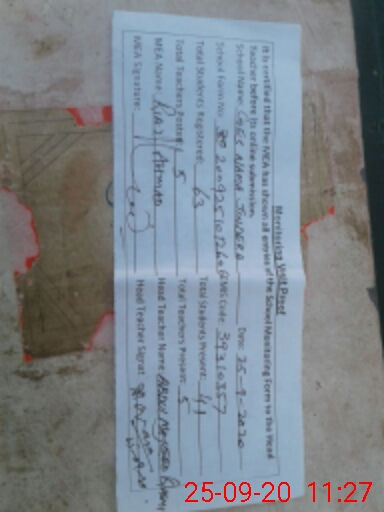 | Attendance Register | Head Teacher | MEA with School | Visit Proof |