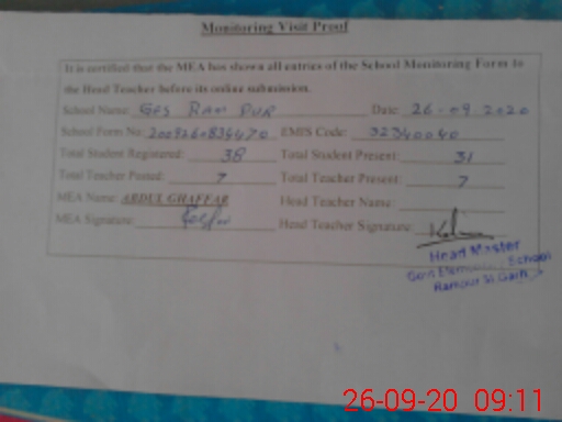 | EMIS Code: 32340040 | Name of School: GES RAM PUR | |||