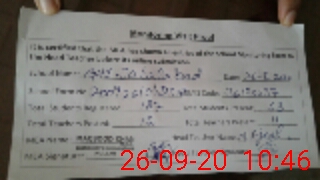 | Monitoring Date: 26-09-2020 | Start Time: 26-09-2020 10:27 AM | End Time: 26-09-2020 10:46 AM | Name of MEA: MA**** ULHA**** KH**** | |