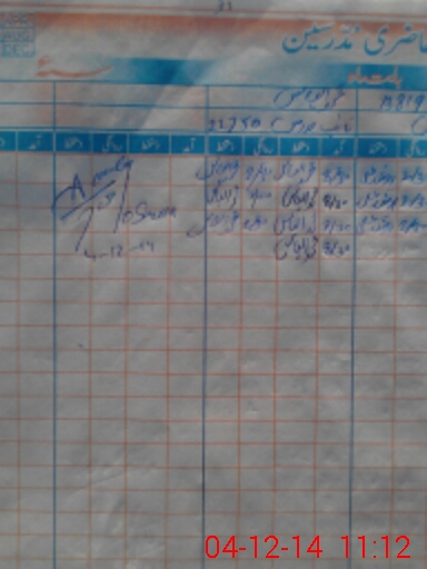 | CNIC | Full Name | Designation | R/C | Absence During Last Calender Month |