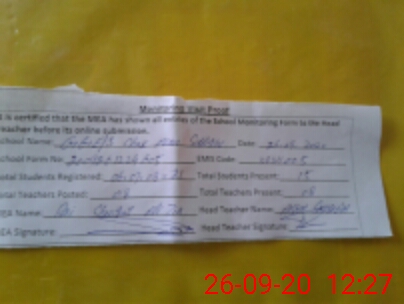 | Attendance Register | Head Teacher | MEA with School | Visit Proof |